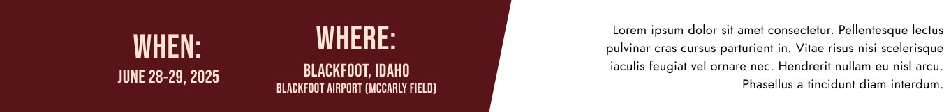 The competition will be held on the tarmac at the Blackfoot Municipal Airport (McCarley Field). During the competition the area will continue to be an active airport. NO guns, fireworks and all fire/flame must be contained within the cooking apparatus. Pets MUST be on a leash or contained at the teams cook site. There is a dog park just outside the airport gate. Vehicles must follow established traffic flow through the airport property.